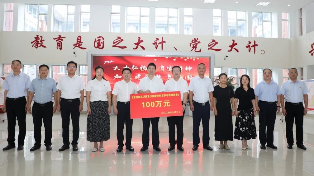 9月5日,在第 40 個教師節(jié)來臨之際,青島軟控機(jī)電工程有限公司向膠州市教育和體育局捐贈100萬元,儀式在膠州市教育體育局舉行。膠州市委常委、統(tǒng)戰(zhàn)部部長,市政府副市長董如增出席;膠州市教育和體育局黨組書記、局長、市委教育工委常務(wù)副書記尹少杰,青島軟控機(jī)電工程有限公司總經(jīng)理武守濤參加儀式并講話。