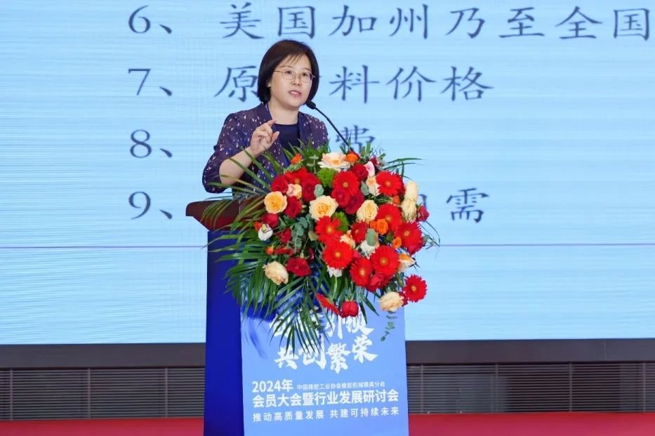 徐文英作題為《中國橡膠行業(yè)經(jīng)濟(jì)運行情況分析及未來展望》的報告。徐文英指出,當(dāng)前我國輪胎行業(yè)存在出口占比過大、貿(mào)易摩擦頻繁、同質(zhì)化競爭嚴(yán)重等問題。在此背景下,輪胎企業(yè)應(yīng)該走國際化、可持續(xù)發(fā)展道路,關(guān)注環(huán)境、社會、治理,構(gòu)建ESG體系,告別“野蠻增長”,實現(xiàn)高質(zhì)量、有序發(fā)展。