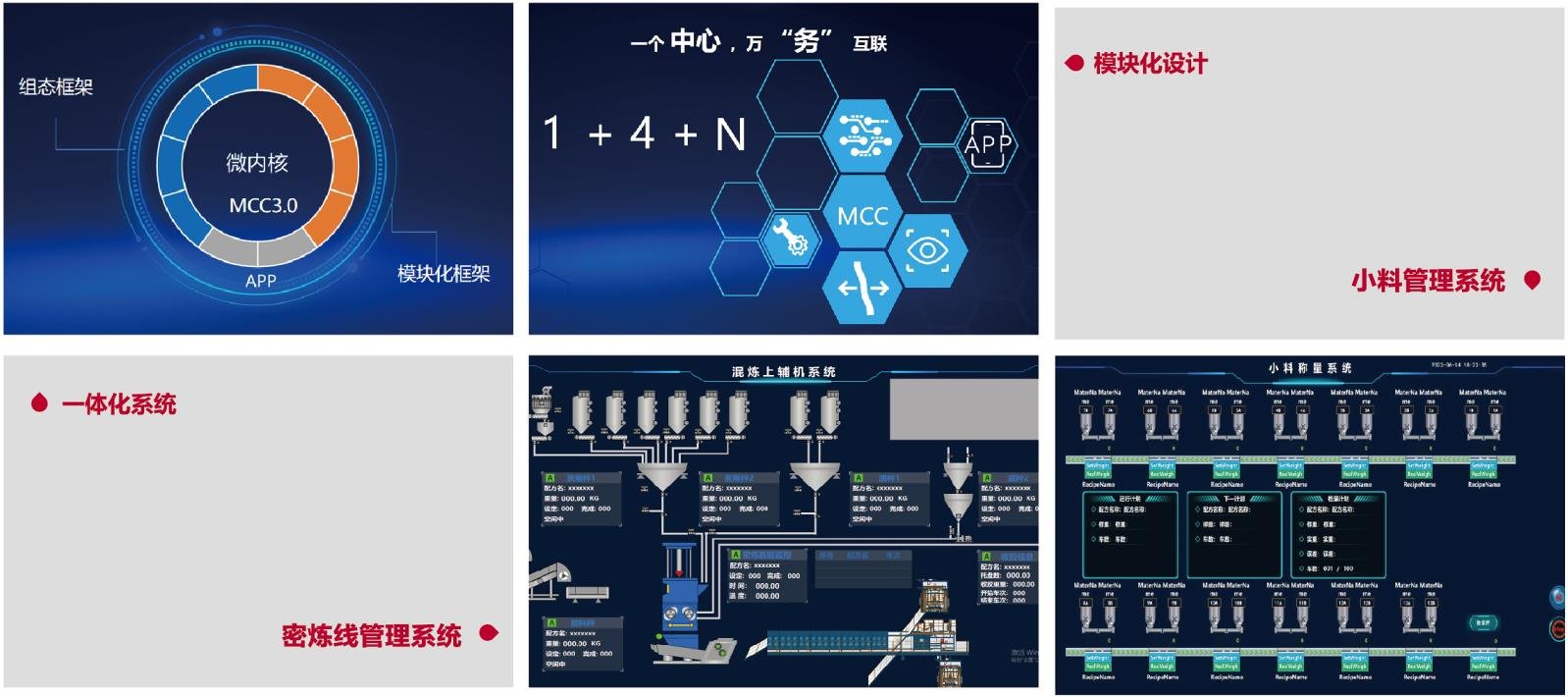 MCC是密煉車間一體化信息管控平臺(tái),主要功能包括密煉車間設(shè)備工藝管理、計(jì)劃管理、生產(chǎn)監(jiān)控、數(shù)據(jù)分析、過程追溯統(tǒng)計(jì)權(quán)限管理等,可以管控一條密煉生產(chǎn)線所涉及的設(shè)備,包括上輔機(jī)、下輔機(jī)、密煉機(jī)、小料稱量系統(tǒng)等。