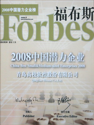 日前,全球著名雜志《福布斯》中文版公布了2008中國潛力企業(yè)榜單,青島軟控以其突出的成長性和發(fā)展?jié)摿Q身榜單。
