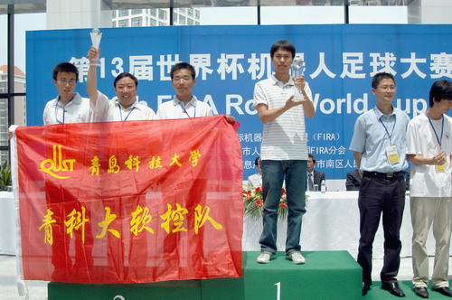 7月23日,在青島市舉辦的第十三屆FIRA世界杯機器人足球大賽上,青島科大--軟控隊獲亞軍。該項賽事首次在青島市舉辦,共有世界各地的50支隊伍參加。青島科大--軟控隊在仿人型機器人8人舞蹈項目中奪得亞軍,并在其它項目中分獲4個季軍。 世界杯機器人足球大賽是集科技、體育競賽于一體的世界級重要賽事。它通過機器人足球比賽來體現(xiàn)各國在信息科學、自動化控制、機電一體化、人工生命科學等領域的綜合技術水平,素有“小平臺上的技術戰(zhàn)爭”之稱。