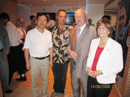 8月14日,公司總裁高彥臣、國際貿(mào)易部部長魏學亮應斯洛伐克奧運委員會和大陸瑪塔道爾公司邀請,在北京斯洛伐克奧運之家拜會了來華出席奧運會開幕式的斯洛伐克總統(tǒng)伊萬加什帕羅維奇及夫人、大陸瑪塔道爾公司領導羅西納先生一行,并參加了“斯洛伐克運動員奧運會慶功晚宴”。 雙方進行了親切友好的交流。我公司與大陸瑪塔道爾公司在長期的合作過程中,真誠相待,優(yōu)勢互補,不僅推動了合作產(chǎn)品的國際化,也進一步促進了中斯友好合作關系。