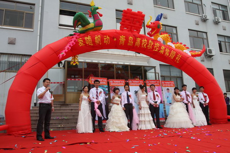 鞭炮齊鳴鑼鼓鬧,金獅起舞祥云繞。9月20日,青島軟控“愛(ài)隨帆動(dòng)”集體婚禮隆重舉行。在這個(gè)收獲的季節(jié)里,五名年輕員工也收獲了各自的愛(ài)情,與愛(ài)侶喜結(jié)連理。公司領(lǐng)導(dǎo)及全體員工共同為他們的愛(ài)情作了見(jiàn)證。