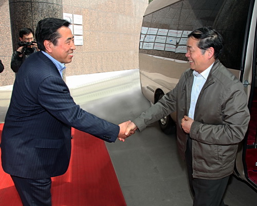 4月28日,國家工業(yè)和信息化部黨組成員、副部長楊學山一行在青島市委常委、副市長牛俊憲,四方區(qū)委書記紀敏,四方區(qū)區(qū)長張杰等相關(guān)領(lǐng)導的陪同下,到國家輪胎工藝與控制工程技術(shù)研究中心(簡稱“中心”)參觀考察。中心主任、公司董事長袁仲雪,中心副主任、副董事長張焱等領(lǐng)導熱情接待了楊學山一行。