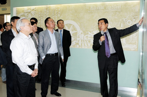 王欽敏聽取了國家橡膠與輪胎工程中心發(fā)展情況及未來規(guī)劃的相關(guān)匯報(bào),實(shí)地考察了中心的重點(diǎn)實(shí)驗(yàn)室,對中心運(yùn)營四年來取得的成果表示肯定。他指出,中心的產(chǎn)學(xué)研模式實(shí)現(xiàn)了三個主體之間的融合,形成了一個利益共同體,形成了合力,這種合力會極大地促進(jìn)整個事業(yè)的發(fā)展,這種產(chǎn)學(xué)研模式在全國是鮮有的成功案例,非常值得推廣。