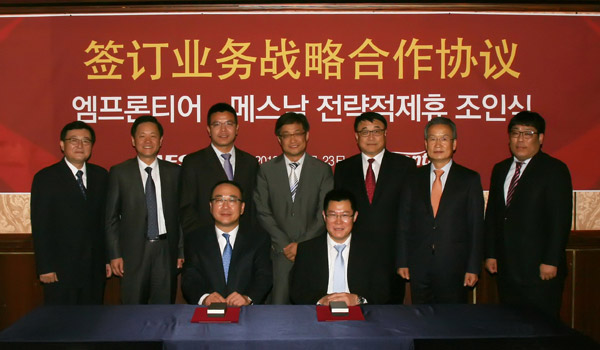 10月23日,軟控與韓泰輪胎全資子公司Emfrontier(EMF)公司在韓國(guó)首爾簽訂了旨在建立戰(zhàn)略合作伙伴關(guān)系的《合作意向書(shū)》,軟控常務(wù)副總裁鄭江家與EMF公司總經(jīng)理安在煥代表雙方簽約。雙方將在IT解決方案、工廠(chǎng)自動(dòng)化、物流自動(dòng)化三個(gè)領(lǐng)域內(nèi)展開(kāi)深度合作,在全球范圍內(nèi)共同開(kāi)發(fā)市場(chǎng)。