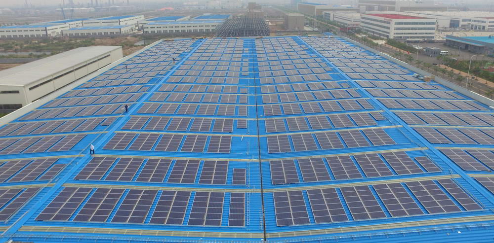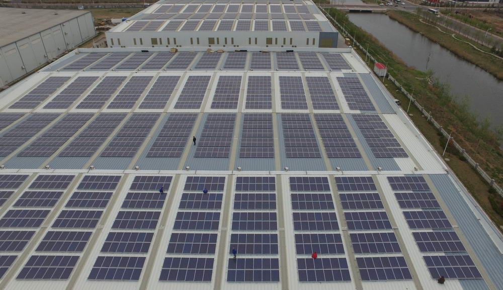 借此機會,青島華控能源牽手青島高新區(qū)內的科捷機器人和佳友機械廠,在其房屋頂建設了光伏發(fā)電項目作為試點。一塊塊一人多高的矩形太陽能板均勻的排列在廠房屋頂,十分規(guī)整,科技感十足,這就是光伏發(fā)電裝置。太陽能板平鋪在廠房屋頂既節(jié)約了空間,同時也可以讓太陽能板充分接受陽光照射。