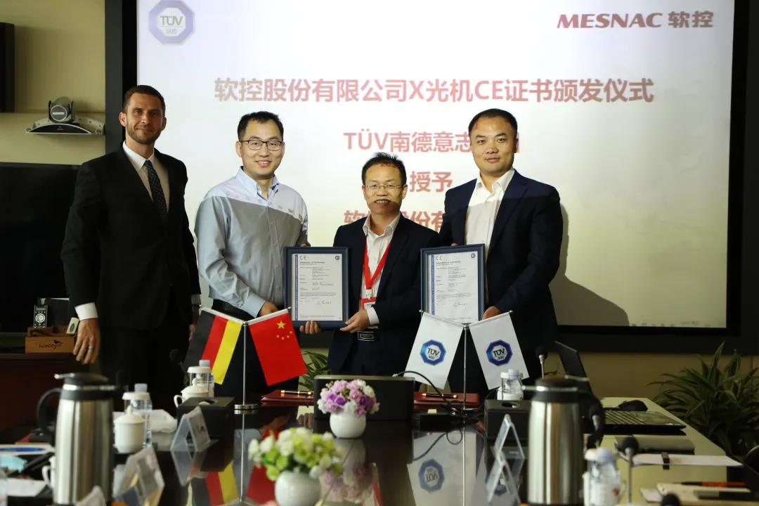 軟控堅持標(biāo)準(zhǔn)引領(lǐng)產(chǎn)品,積極通過最新的標(biāo)準(zhǔn)與技術(shù)為客戶提供高品質(zhì)解決方案,TüV 南德作為國際權(quán)威第三方機(jī)構(gòu),將在橡膠機(jī)械、新材料、新能源等領(lǐng)域與軟控進(jìn)行全方面的合作。儀式現(xiàn)場,TüV 南德向軟控授予X光機(jī)產(chǎn)品的CE證書。