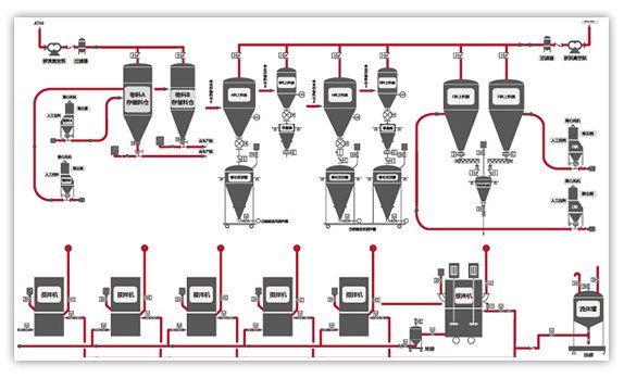 原料輸送:可實(shí)現(xiàn)大批量、遠(yuǎn)距離、高效率輸送;快速準(zhǔn)確的取料并輸送到指定位置;管道封閉輸送有效避免污染。