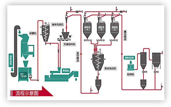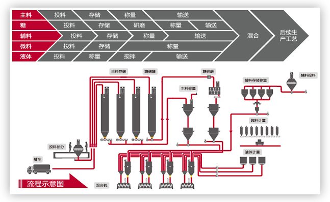 原料存儲(chǔ):通過料倉集中存儲(chǔ),節(jié)省原料庫的空間;原料庫存和用量可控,根據(jù)原料配制不同的輔助卸料裝置;保證適合原料存儲(chǔ)的溫度和濕度。